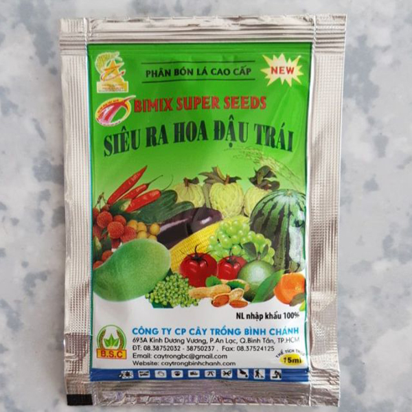 - Giai đoạn trái lớn: Pha 15ml Bimix Super Seeds với bình 8-10 lít nước, phun đều lên cây.